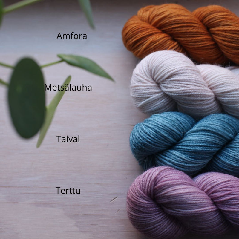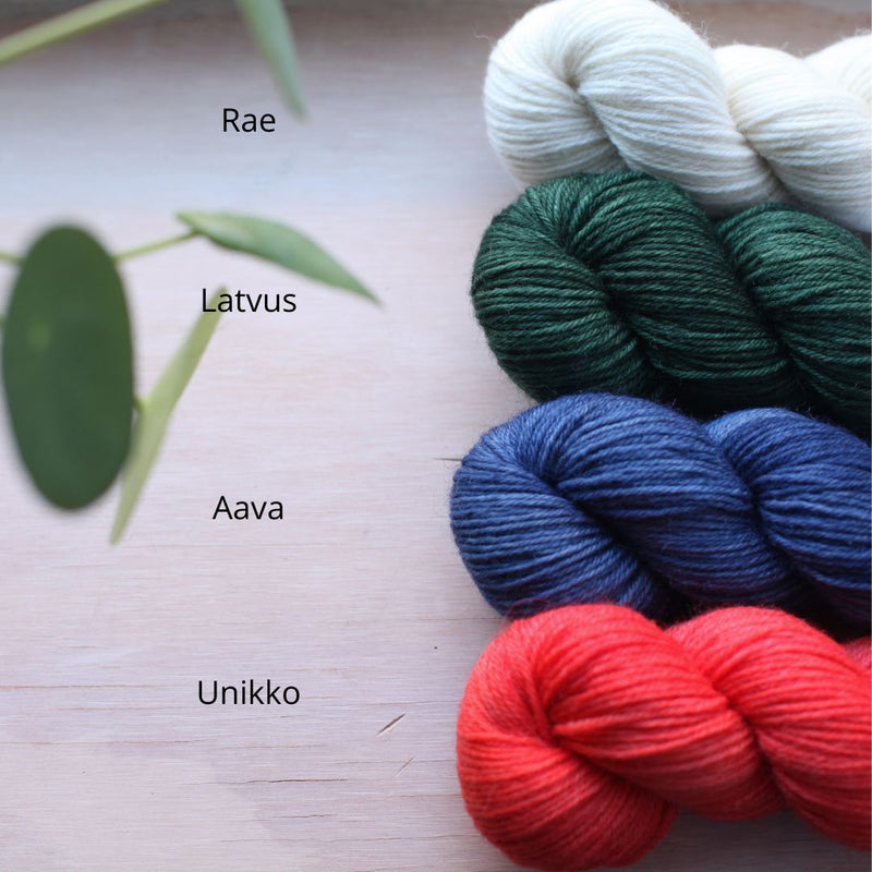 Kaikki Aaran langat värjätään pienissä erissä värjäämöllämme Salossa suomalaisilla reaktiiviväreillä. Lankapohjat Aaran lankoihin tulevat Iso-Britanniasta sekä Saksasta.