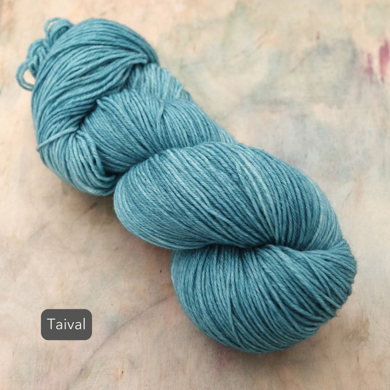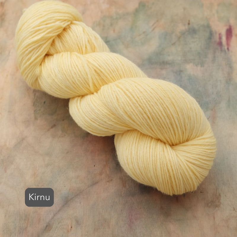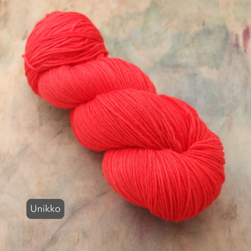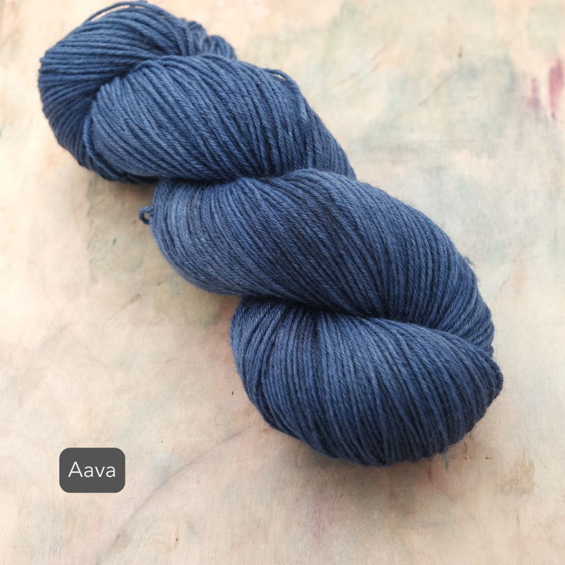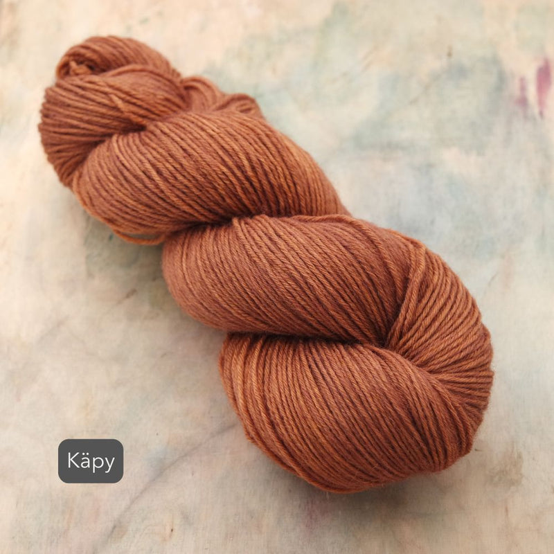 Aara Sisu on lämmin ja kestävä sukkalanka villaisempien ja paksumpien sukkien ystävälle. Värjäsimme Sisuun Aaran all stars-sävyjä sekä ihka uusia lemppareita. Vyyhti riittää mainiosti isoonkin sukkakokoon ja taipuupa tämä lanka mainiosti myös muihin kestävyyttä vaativiin asusteisiin.